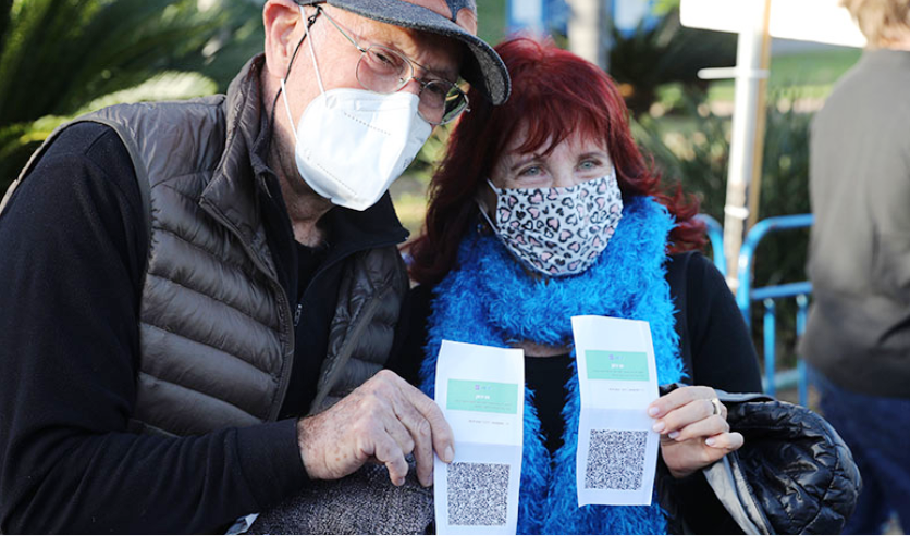 «Παρέχει προστασία, αλλά και μια αίσθηση άνεσης για να καθίσεις ανάμεσα σε άτομα που έχουν εμβολιαστεί», δήλωσε ο Ντόρον Ζίχερ, ένας συνταξιούχος επιχειρηματίας ενώ περίμενε την παράσταση της Ισραηλινής τραγουδίστριας Νουρίτ Γκαλρόν το σούρουπο στο πάρκο Γιαρκόν.